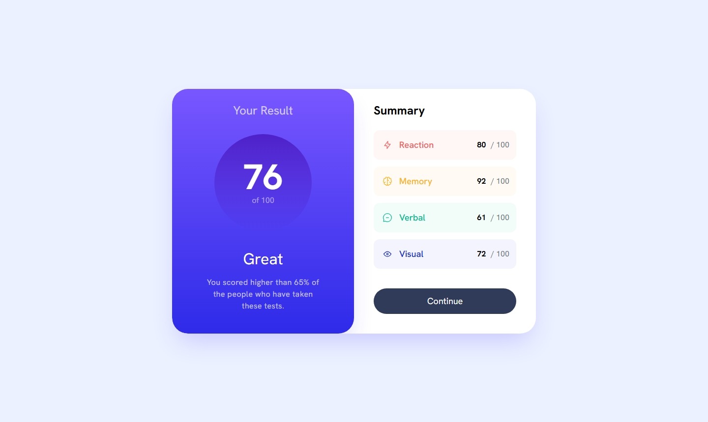 This is a solution to the Results summary component challenge on Frontend Mentor. Frontend Mentor challenges help you improve your coding skills by building realistic projects.